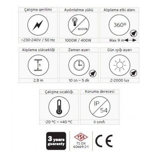 360 Spot Tipi Hareket Sensörü (Sıva Altı) Nade 10365